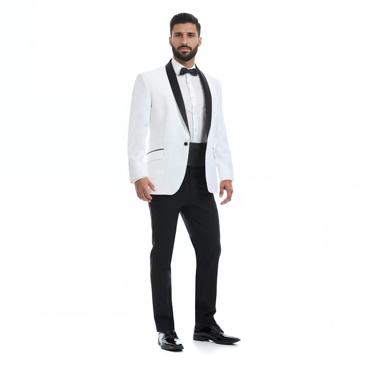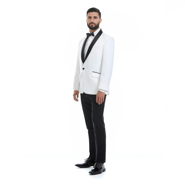 Saco de Smoking Solapa de Shawl en Satin / Blanco